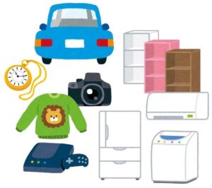 (ア)中古の洋服、家具、家電、ゲーム、車など