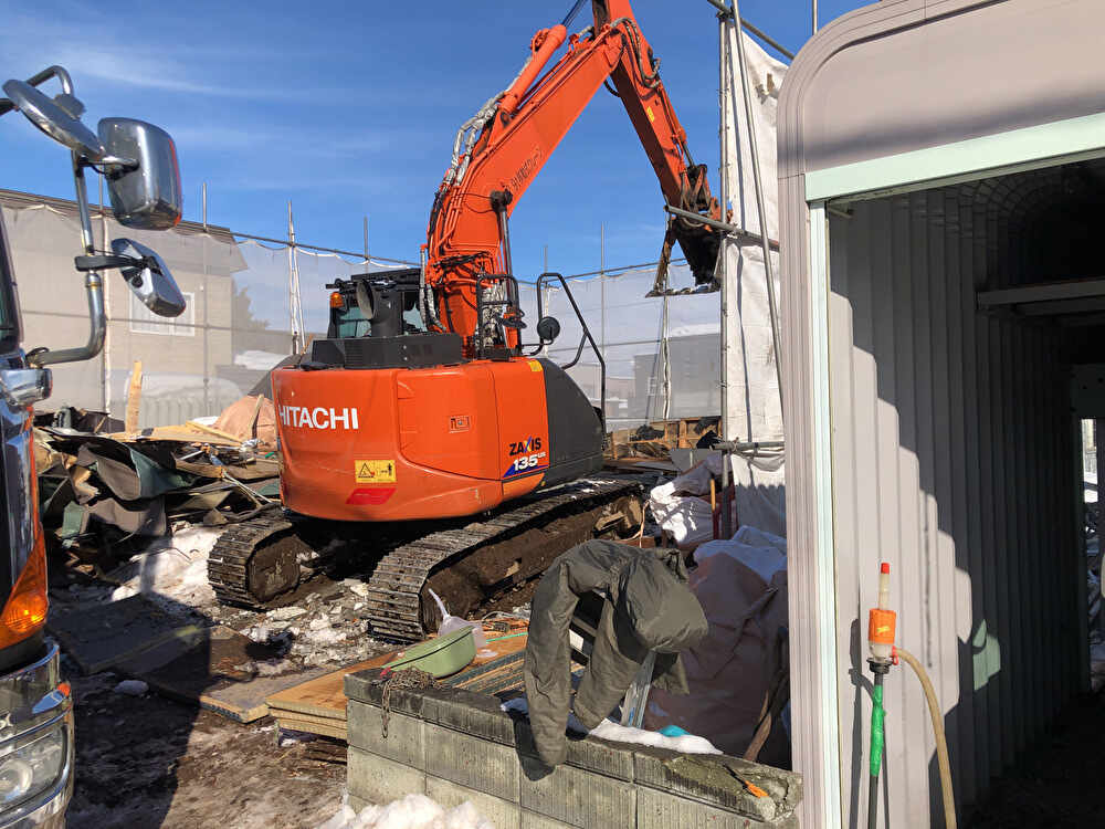 ・安心の無料見積もり、解体業者のスマイル解体@札幌です。お世話になっている不動産会社様からのご紹介で、北広島市の木造二階建て住宅の解体工事を行いました。雪のシーズンでの工事で、屋根の雪下ろし、敷地内の除雪を行ってからの工事になりました。事前のアスベストの調査にて外壁からアスベストが検出されたので、アスベストの除去工事を行ってからの解体工事になりましたが、安全面に注意しながら迅速に工事を行い、工期を前倒しして、無事時アスベストの除去工事、解体工事ともに完了致しました。北海道の冬の解体工事は弊社へお任せください。 |