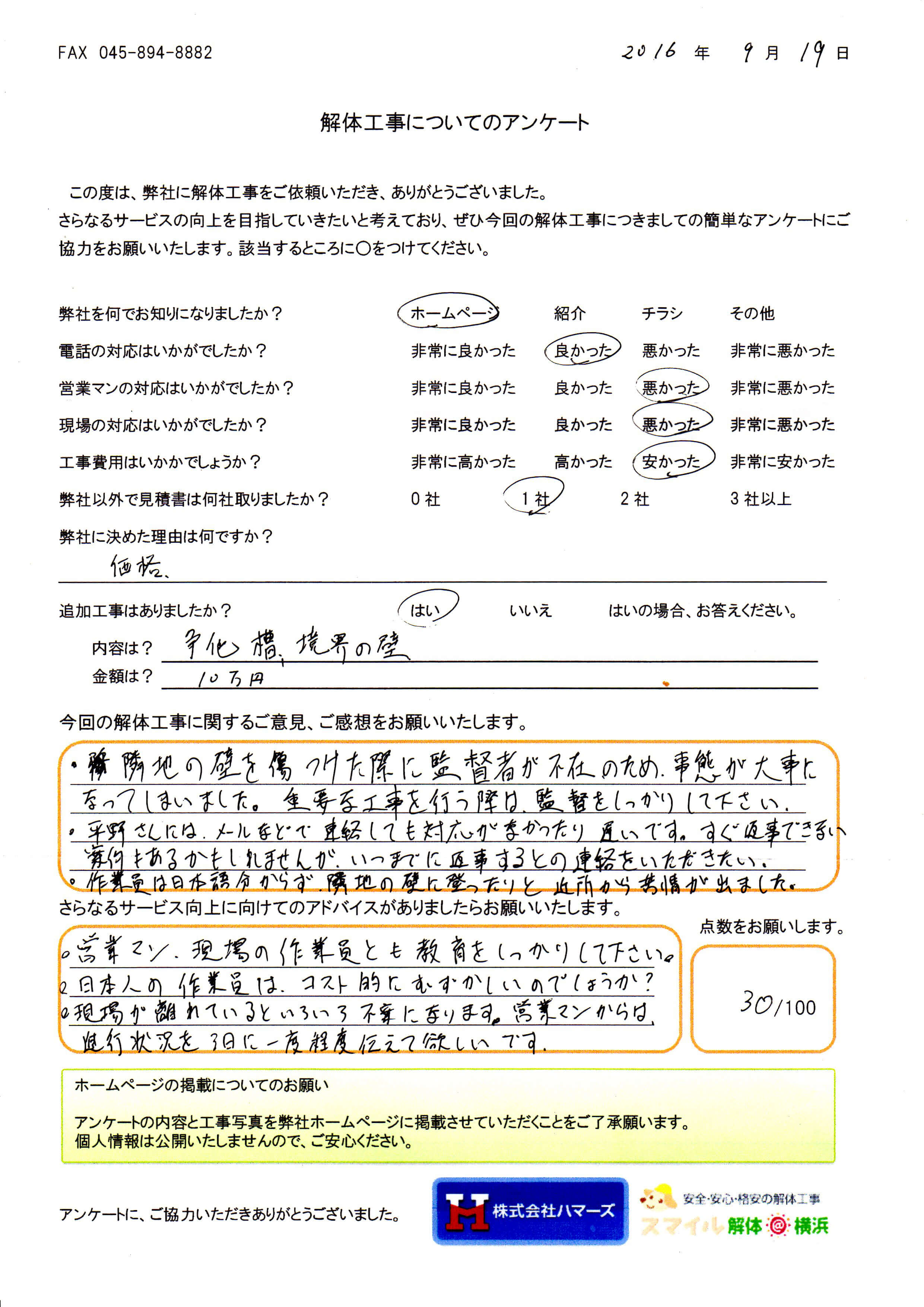 ・営業マン、現場の作業員とも教育をしっかりして下さい。