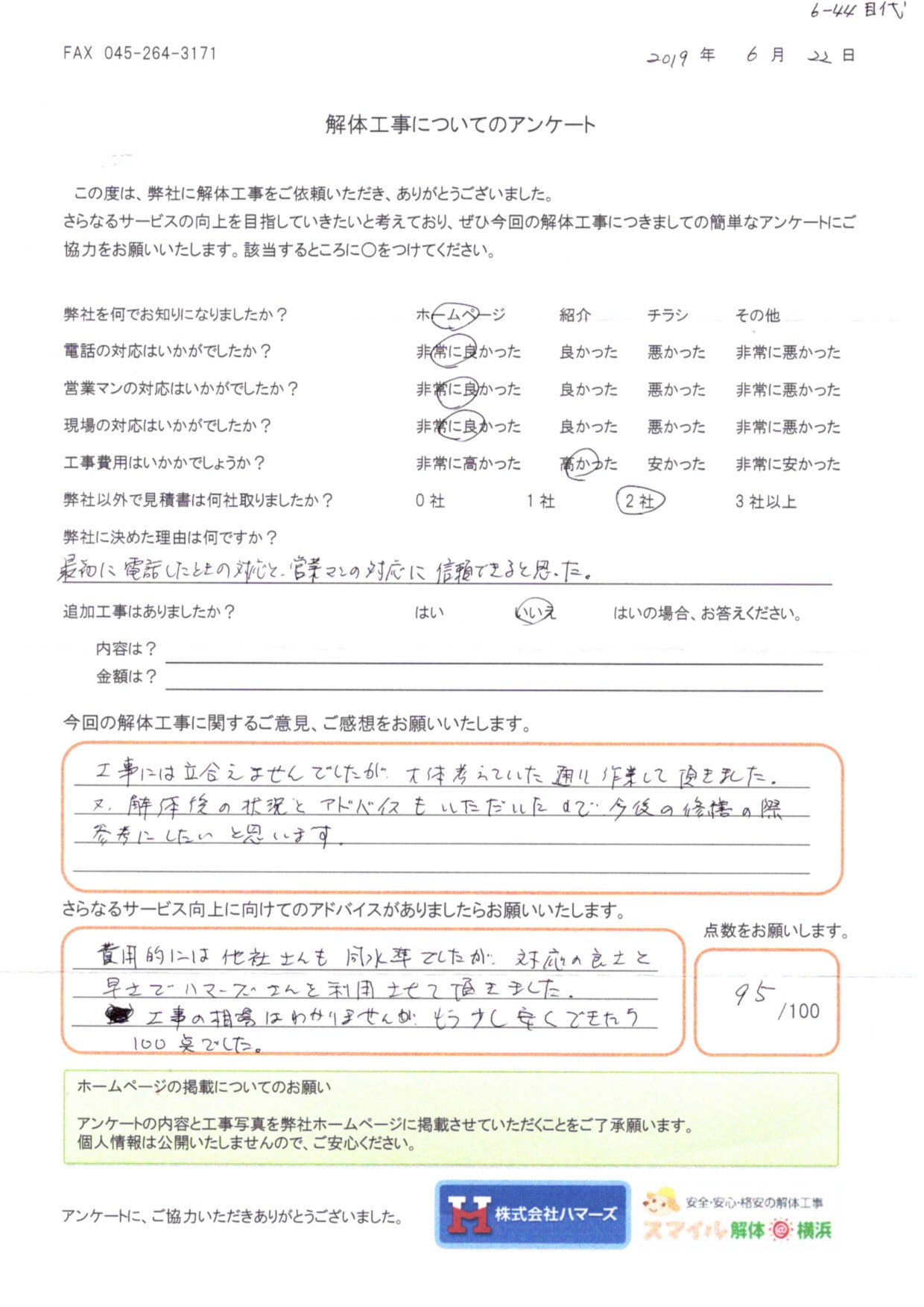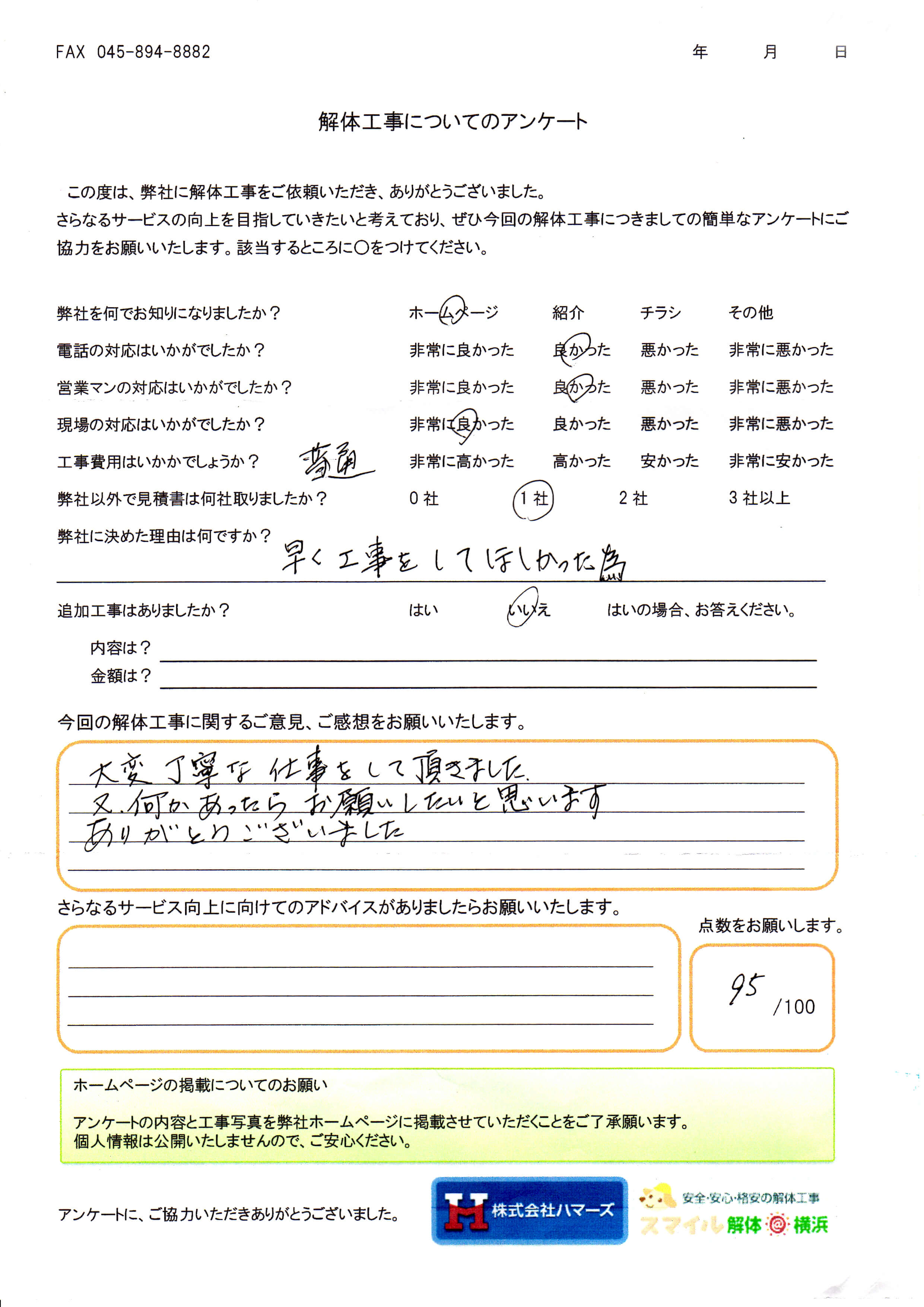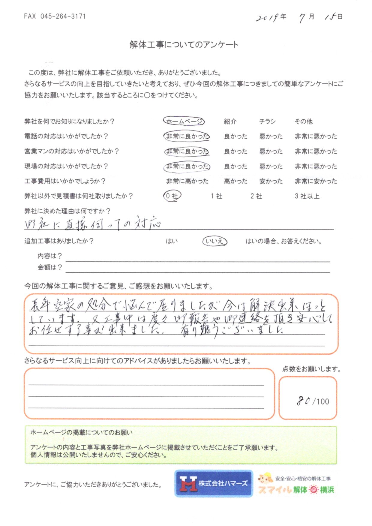 - スマイル解体を何でお知りになりましたか?・・・ ホームページ