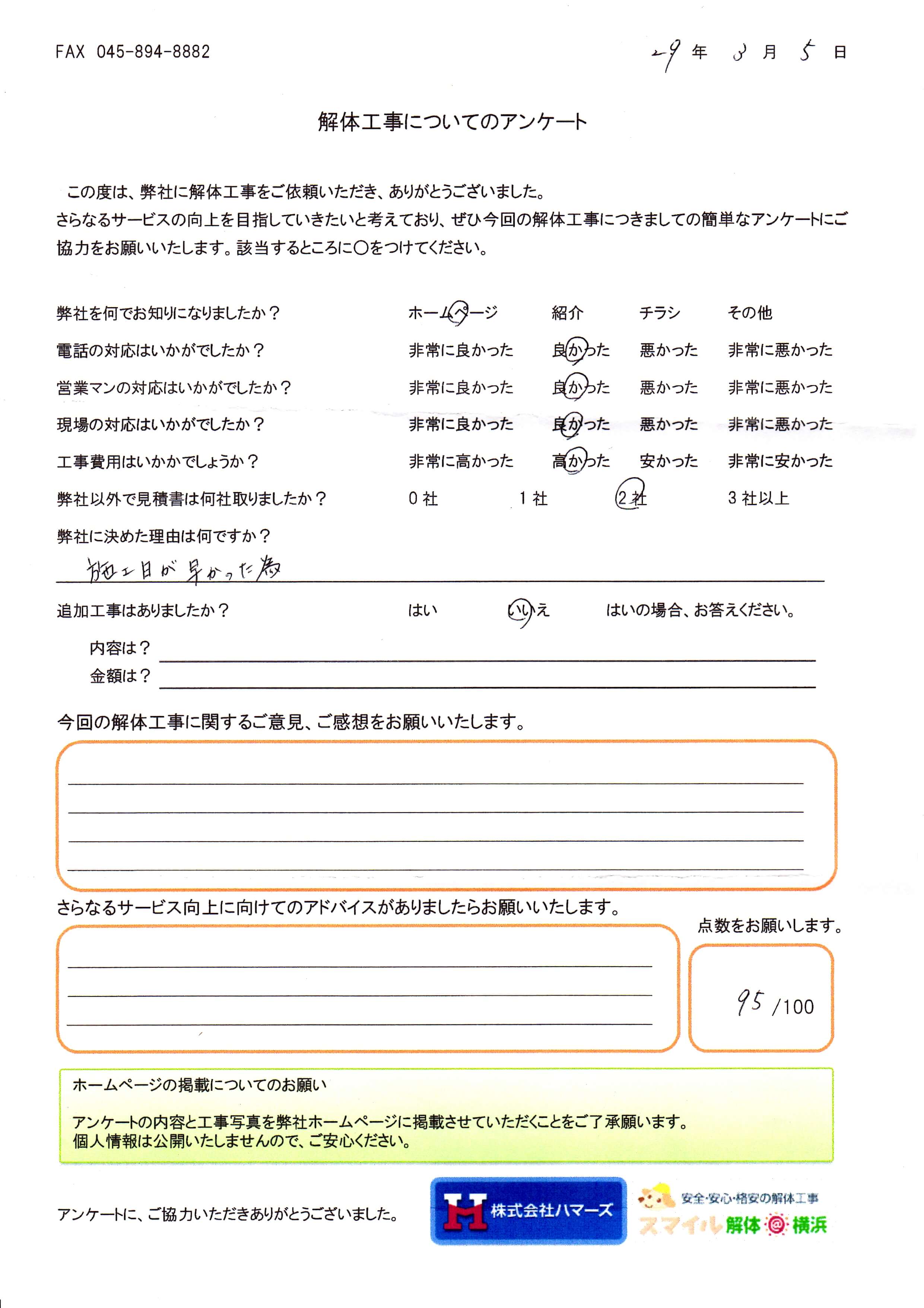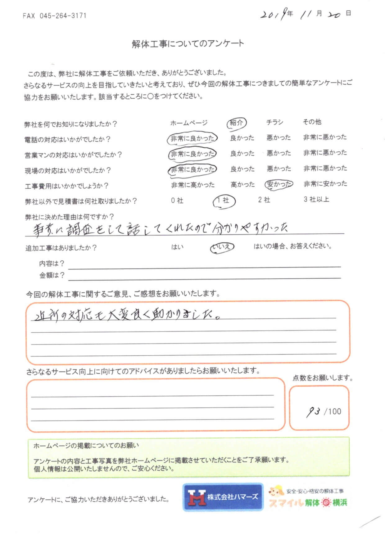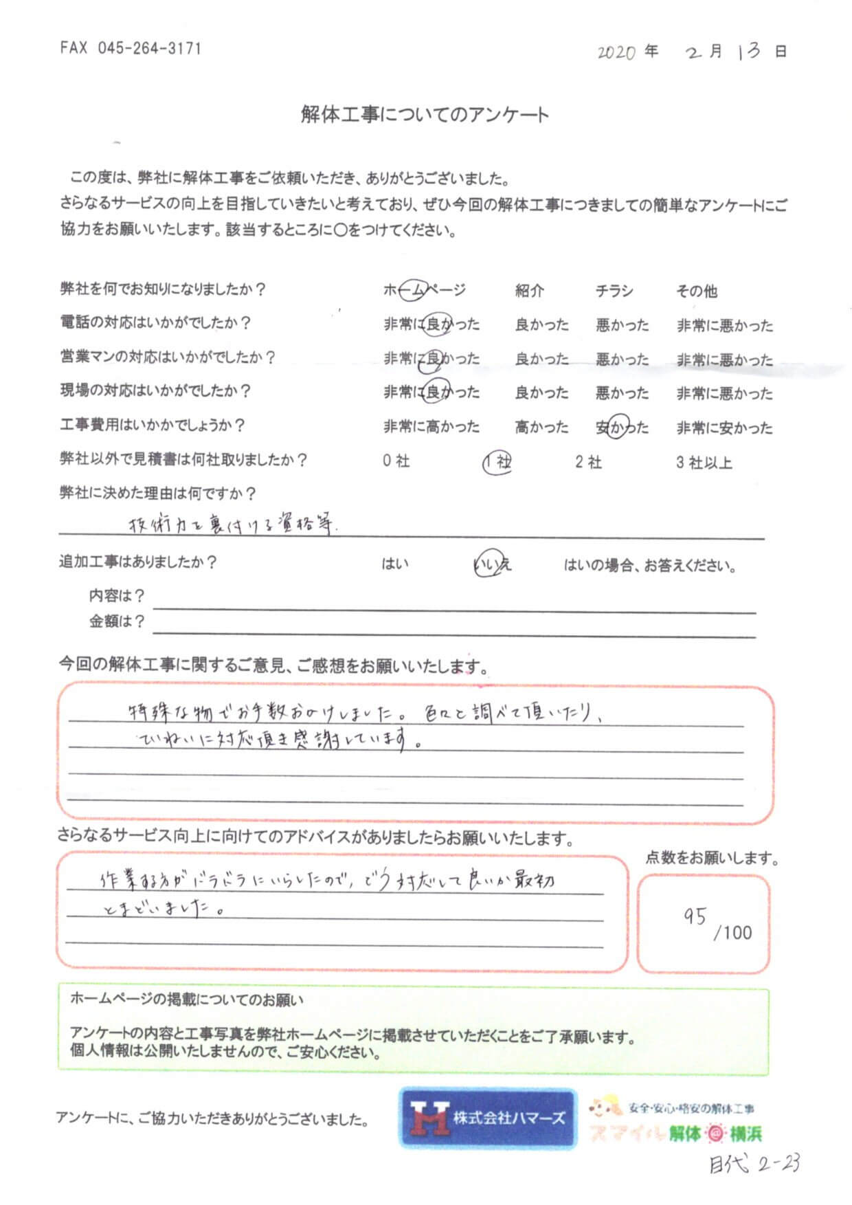 - スマイル解体を何でお知りになりましたか?・・・ ホームページ