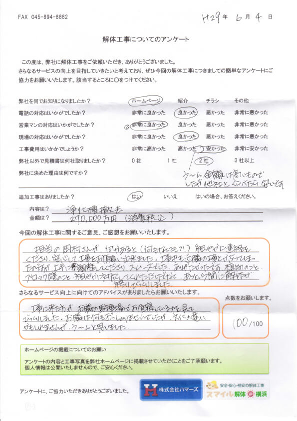 現在掲載のお客様の声は、本社(スマイル解体)で寄稿頂いたお客様の声の一部になります。