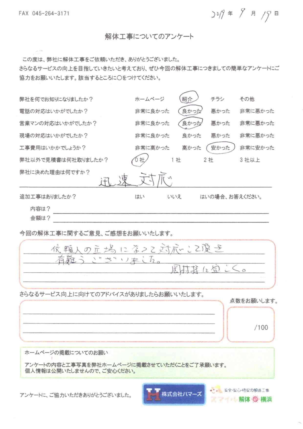 「現場の対応に満足しています。安心してお任せする事が出来ました。」