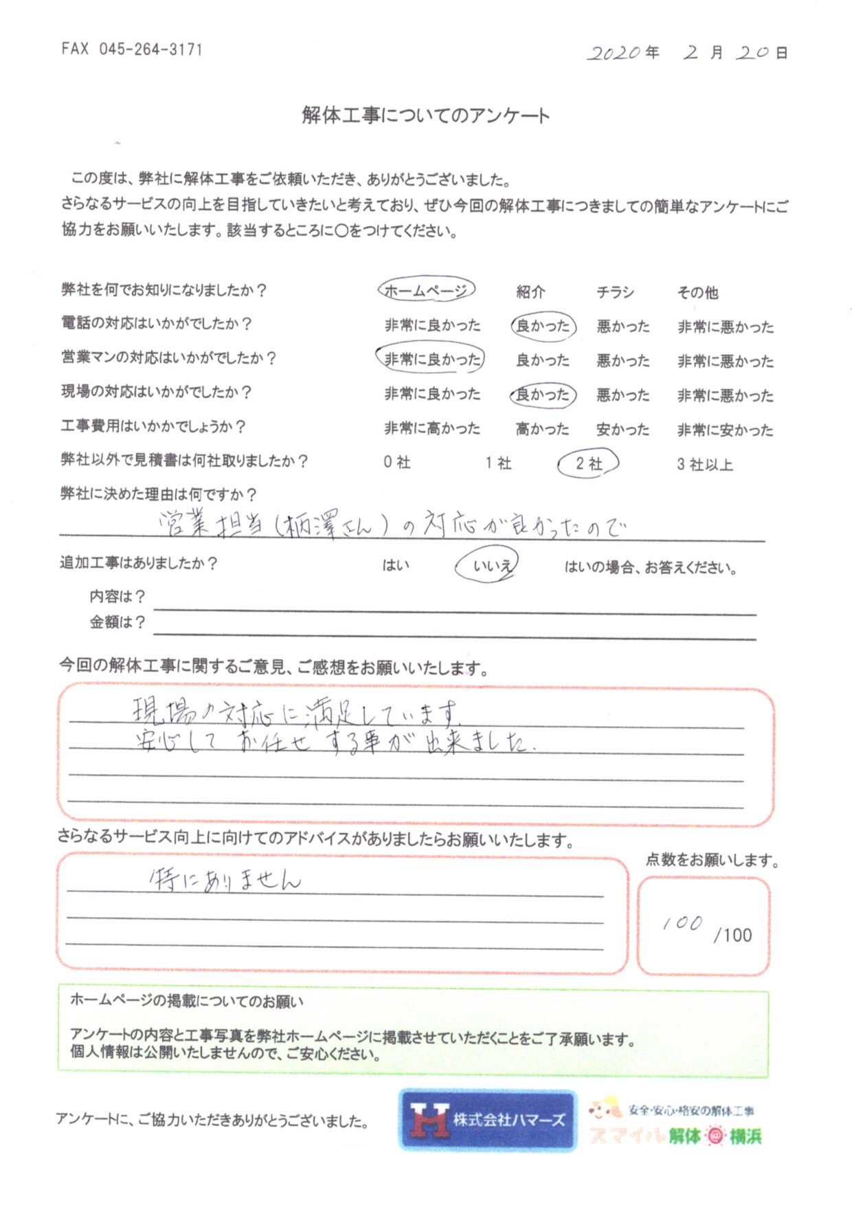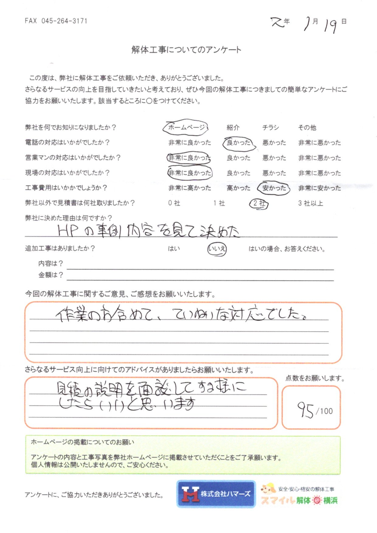 今後、スマイル解体@札幌でもお客様の声の掲載をしていきますので、お待ちください。