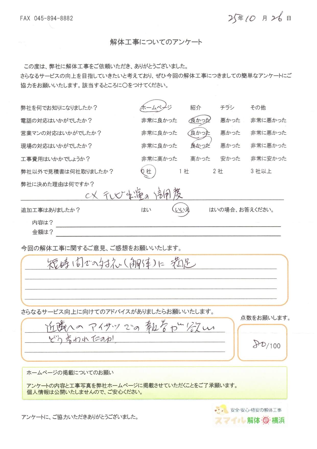 • スマイル解体を何でお知りになりましたか?・・・ ホームページ